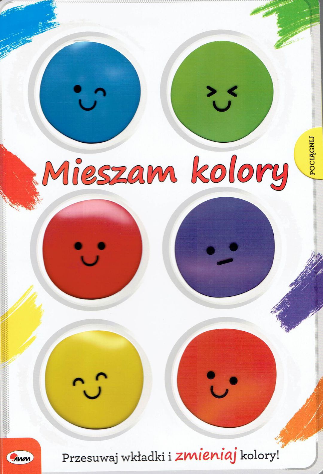 Książeczka kreatywna o podstawowych i pochodnych barwach. Dołączone przesuwane wkładki są zawsze pod ręką i pomogą mieszać kolory. Urocze ilustracje zachęcają do kreatywności i eksperymentowania. W książce znajdują się urocze ilustracje, które rozbudzą w dzieciach KREATYWNOŚĆ. Ograniczeniem jest tylko WYOBRAŹNIA. Maluchy pokochają MIESZANIE KOLORÓW i naukę o barwach. Do książki dołączono PRZESUWANE WKŁADKI, dzięki którym można stworzyć świat w nowych barwach.